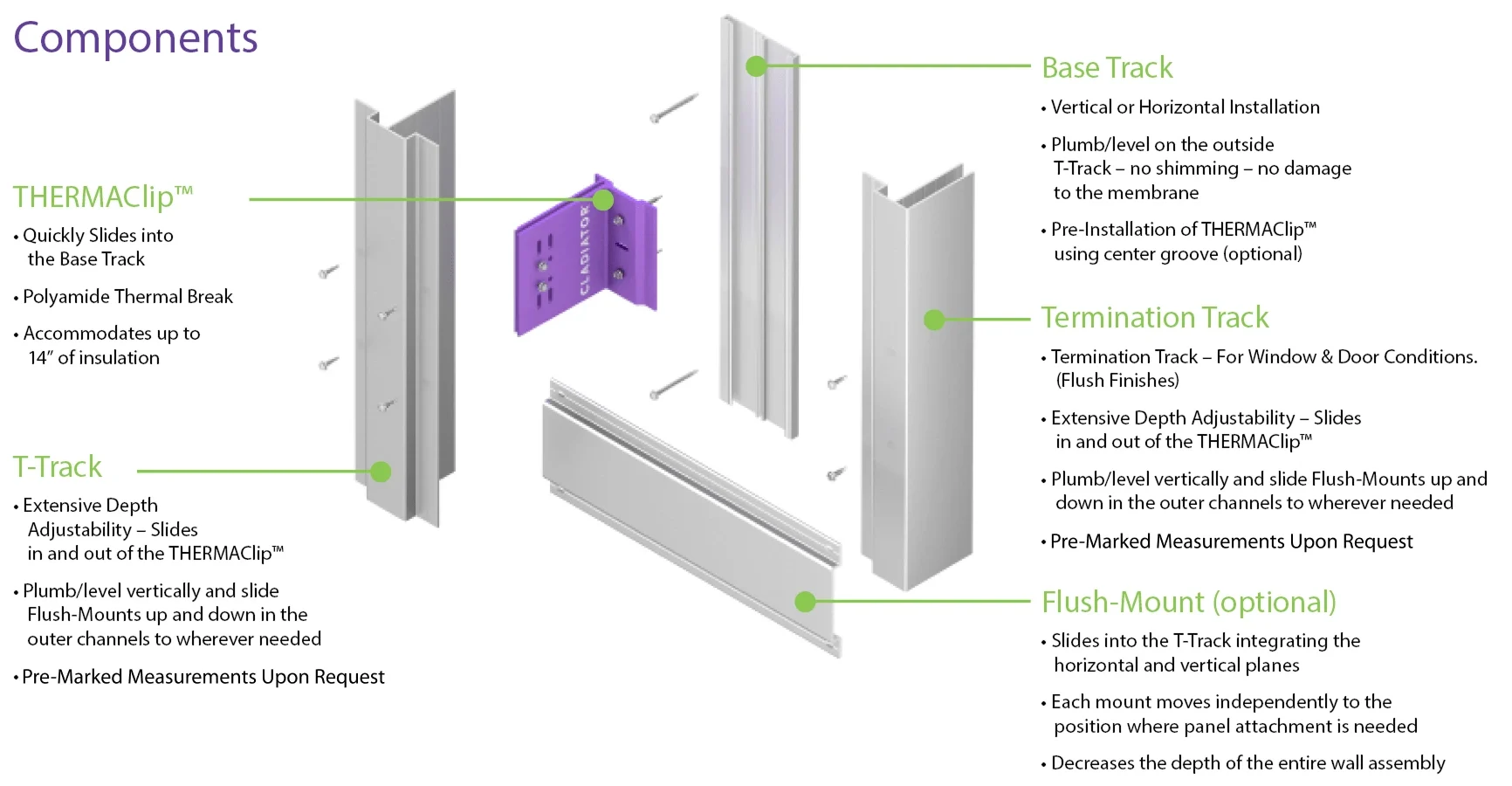CL-300, notre système de clips et de rails, est un système de support de bardage réglable et isolé thermiquement qui peut supporter le poids de n’importe quel matériau de bardage et qui intègre de manière unique les rails horizontaux et verticaux de fixation sur le même plan, ce qui rend l’installation plus facile et plus rapide.